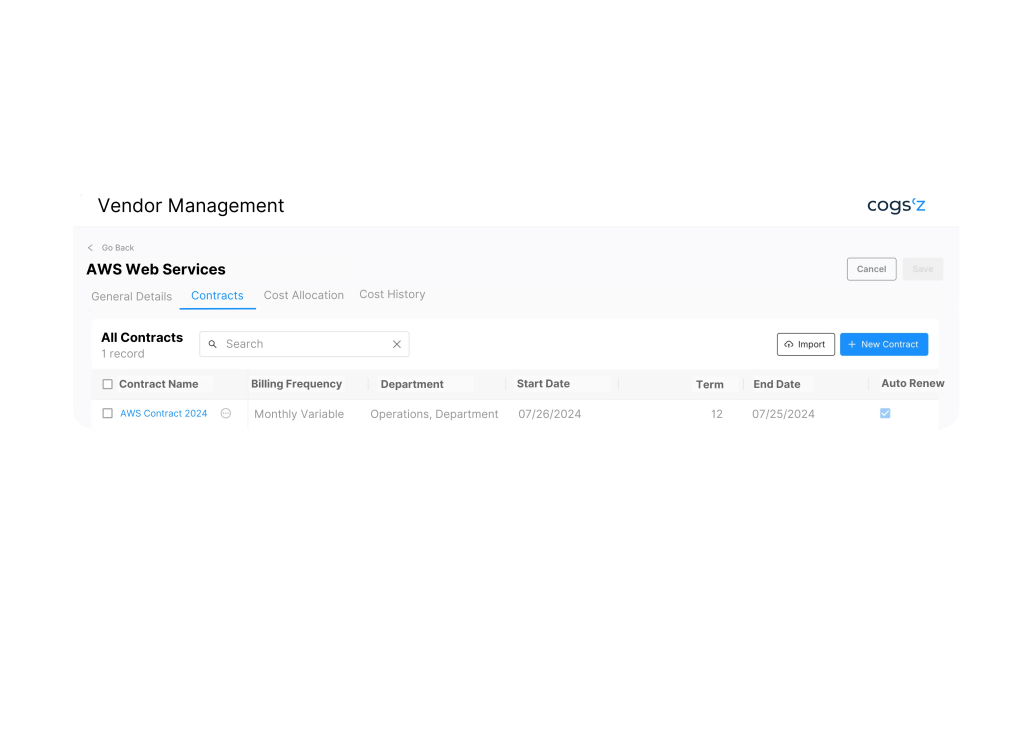 Link contracts to vendor and customer profiles for clear cost and revenue oversight.