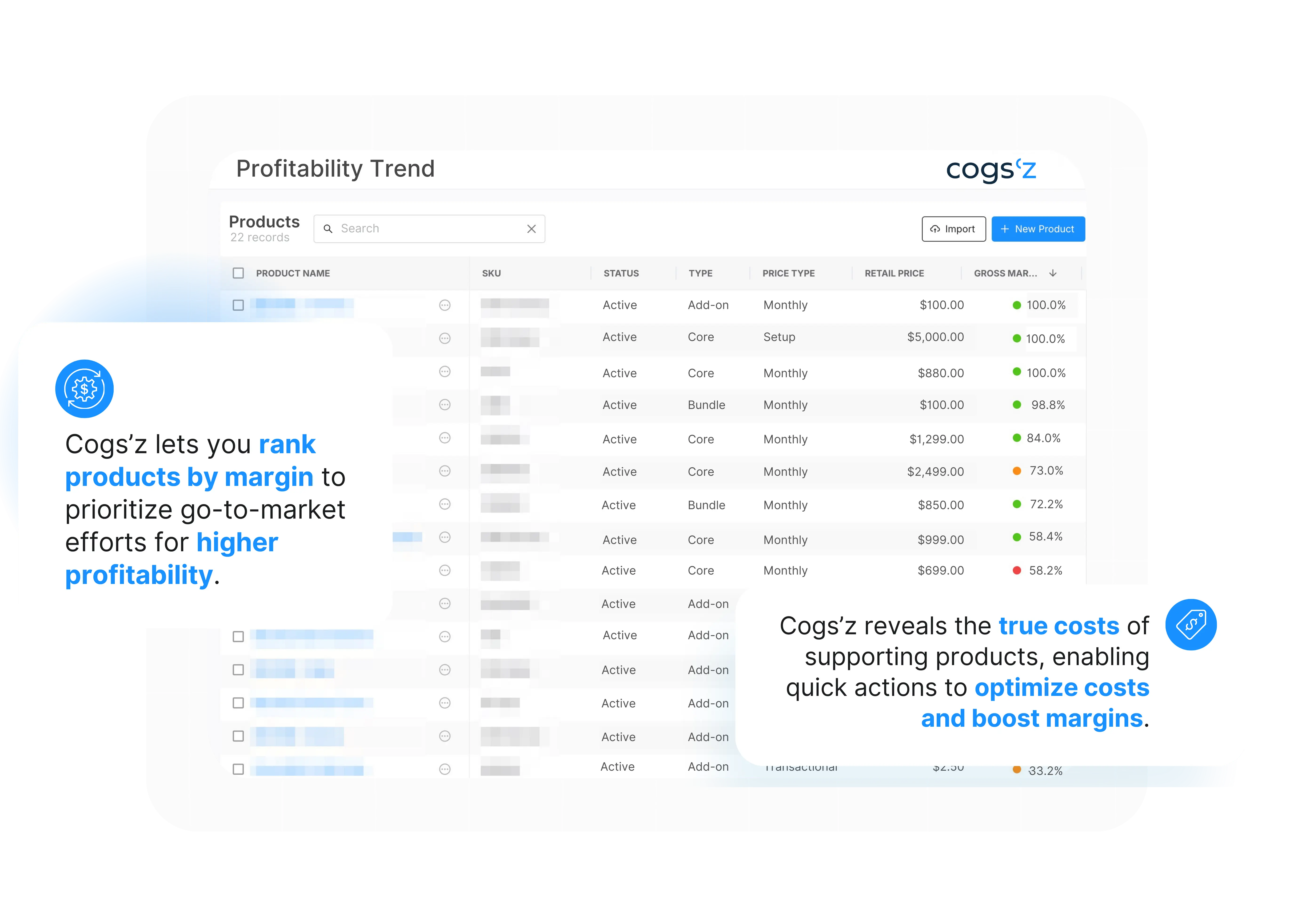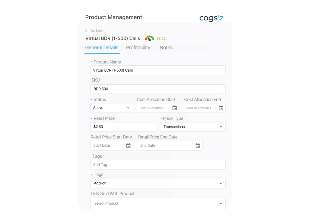 Cogs’z product management ranks offerings by margin to prioritize profitable go-to-market efforts.